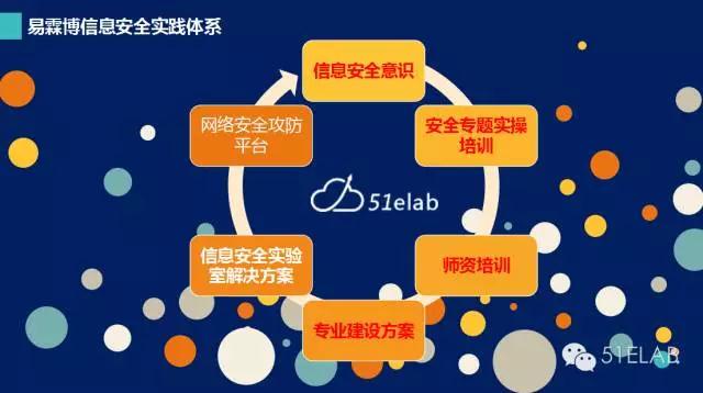 北京易霖博信息技术有限公司(51ELAB)是国内领先的信息安全综合实训平台解决方案提供商,是国内拥有自主品牌和知识产权的专业信息安全公司。易霖博2013年进入国内信息安全实训市场,秉承“安全实训、虚实结合、课程丰富、人才培养”的理念,立足自主研发与持续创新,为用户提供智能、安全、内容丰富的实训产品、解决方案和优质的服务。