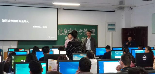 张总针对《如何成为信息安全牛人》进行了讲解,讲到大学生需要对信息安全的认知,要怎么学习,以及未来的职业规划。同时还介绍网络信息安全不仅仅是技术问题,同时也是一个管理问题。随后,张总分别从网络信息安全的技术和管理视角,阐述了解决网络安全问题的方法与措施,强调了网络全方位安全保护,让信息安全无处不在的重要性。