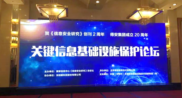 2017年10月26日,在《信息安全研究》杂志创刊2周年之际,由《信息安全研究》杂志社主办的《关键信息基础设施保护论坛》在北京西苑饭店成功举办。该论坛聚集主管部门、专家学者、企业家,务实分析当前的信息安全形势及探讨应对策略,北京易霖博信息技术有限公司受邀参加。